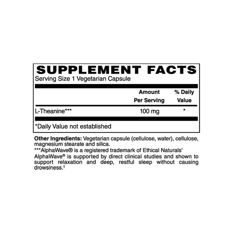 • Benefits: L-Theanine promotes healthy relaxation without drowsiness, mental clarity, focus, and may enhance learning and memory. It can help reduce nervous tension and support the body's response to daily stress. L-Theanine has been shown to limit the stimulatory effects of caffeine and adrenaline, and may help provide support for PMS-related health issues.