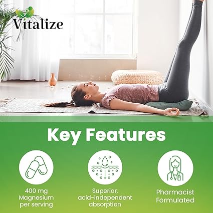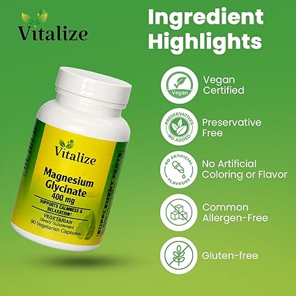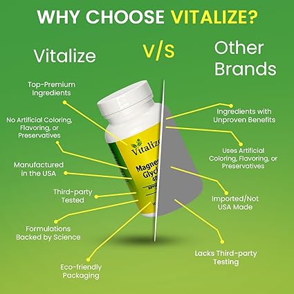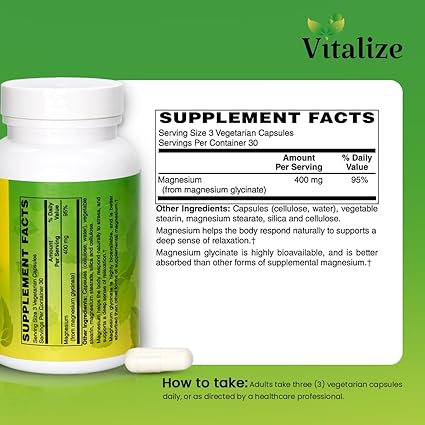 • Benefits: Magnesium glycinate is a highly absorbable and bioavailable form of magnesium that is gentle on the stomach. This essential mineral plays a crucial role in various bodily functions, including muscle and nerve function, bone health, and relaxation. It has been linked to improved cardiovascular health, reduced risk of arrhythmia and atherosclerosis, and better stress management. Furthermore, magnesium is vital for maintaining normal blood pressure and supporting overall wellbeing.
